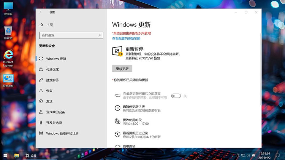 #将Windows Update自动更新调整为从不推荐