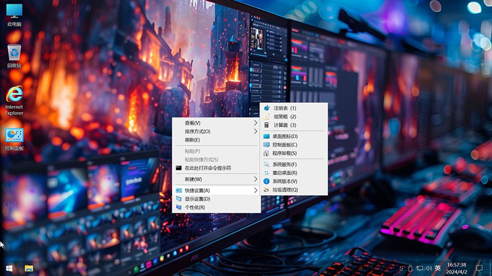 集成右键 快捷设置 包含 注册表 组策略 计算器 桌面图标 控制面板 系统服务 重启桌面 系统版本。