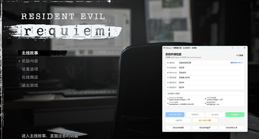 重启电脑后继续打开Denuvo.exe点击 安装驱动 → 启动驱动 → 启动游戏 → 开始玩耍